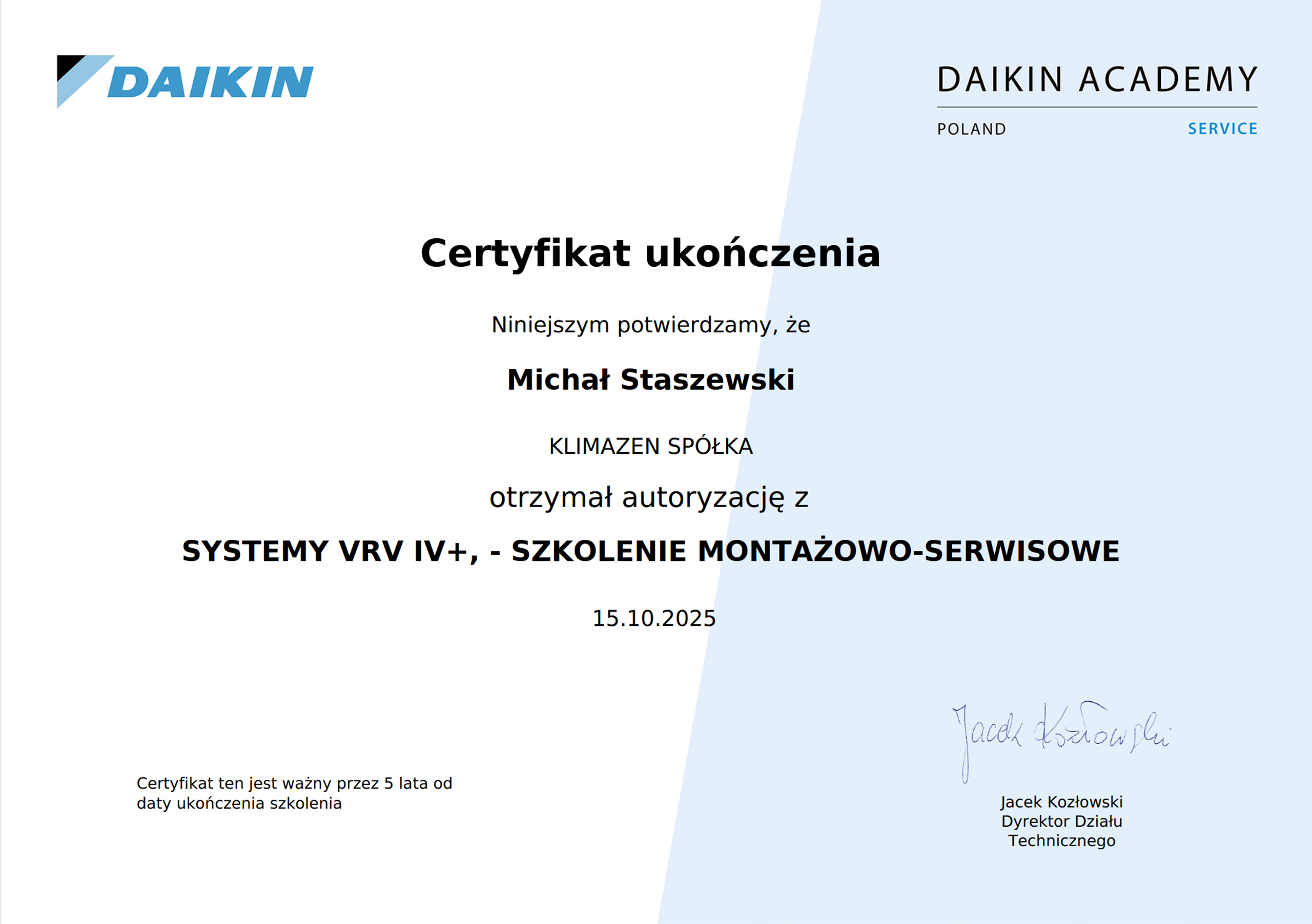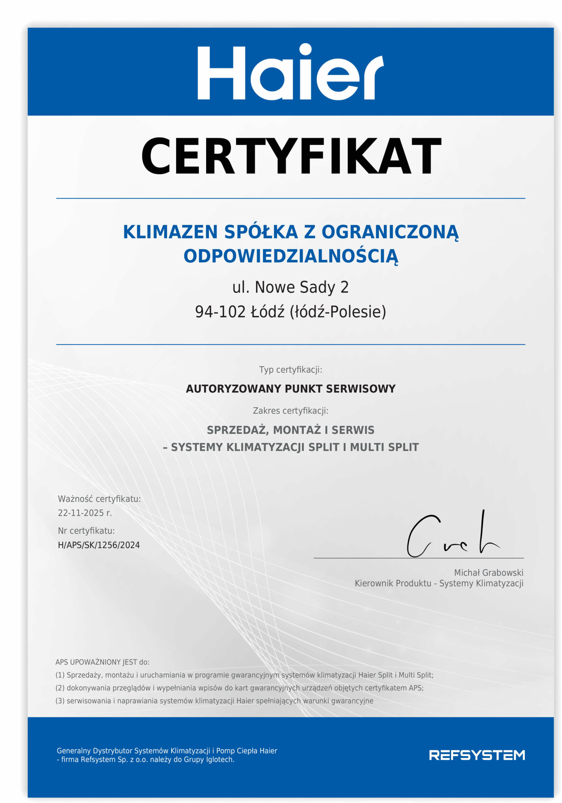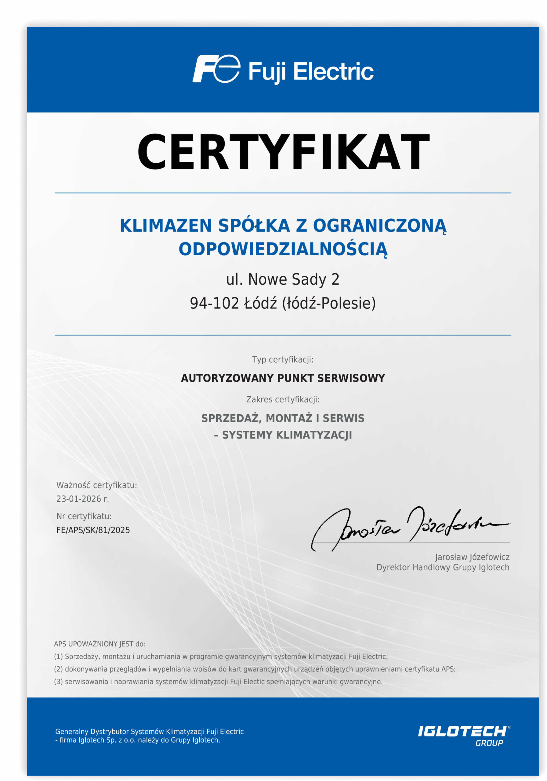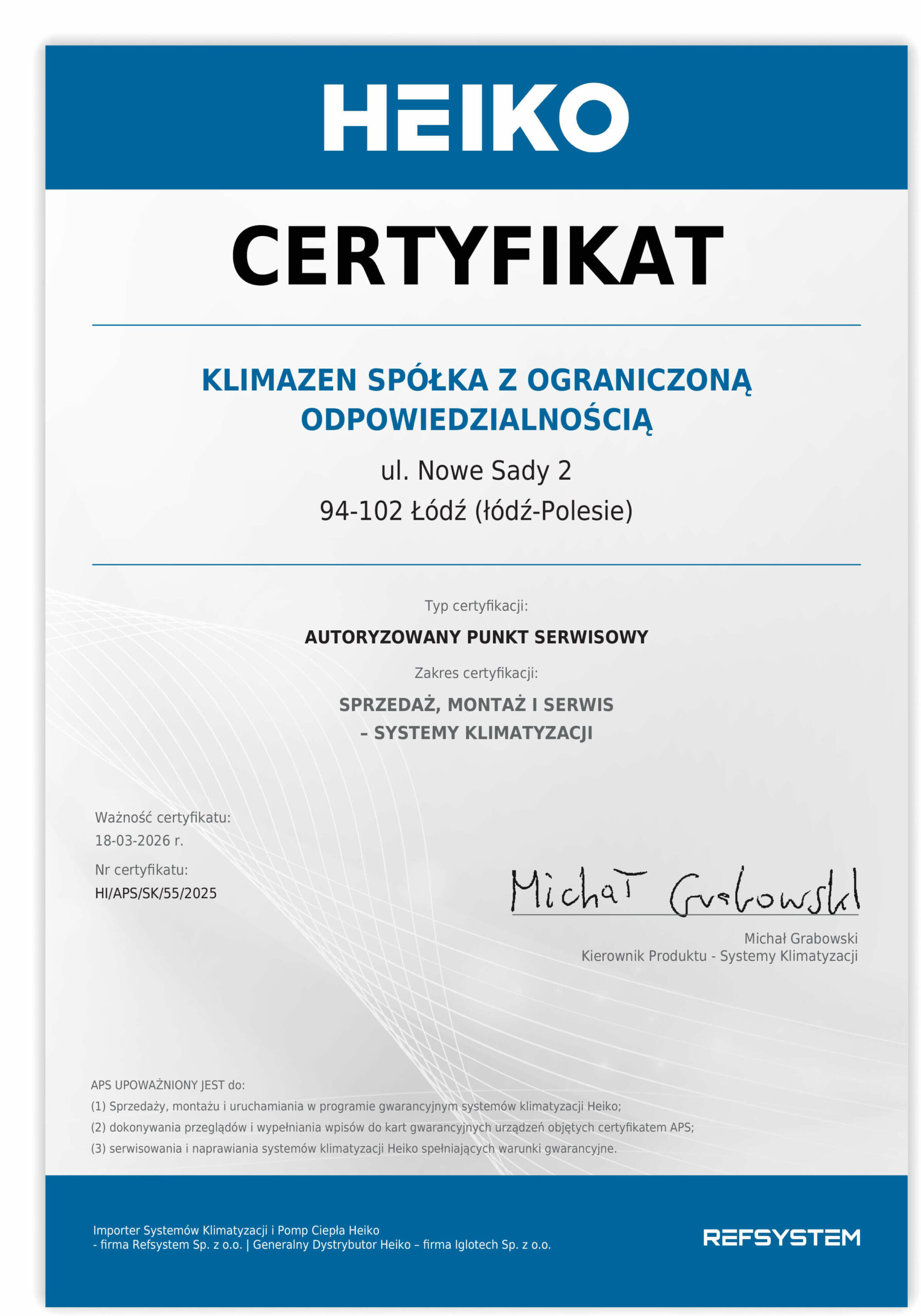 Mamy uprawnienia F-Gaz oraz regularnie uczestniczymy w szkoleniach branżowych.