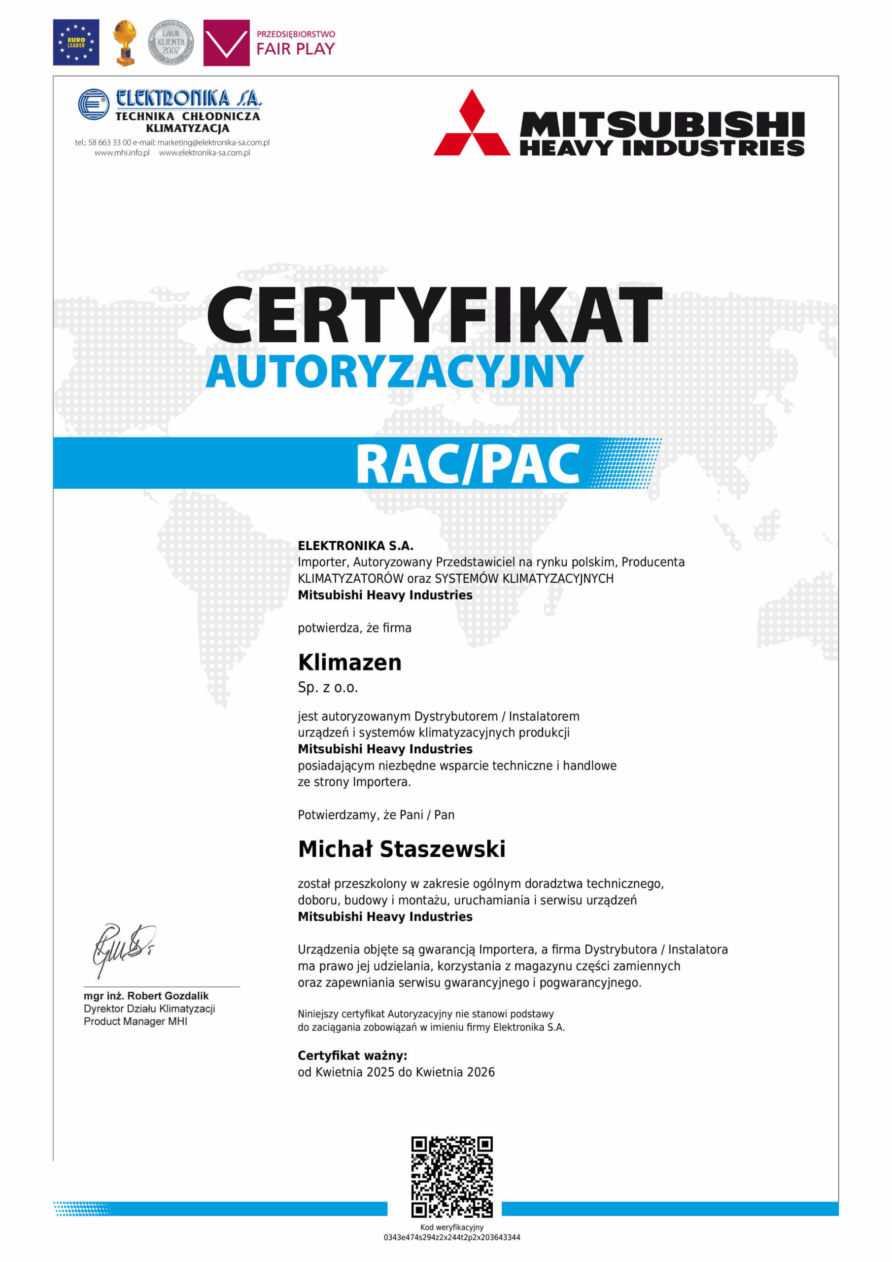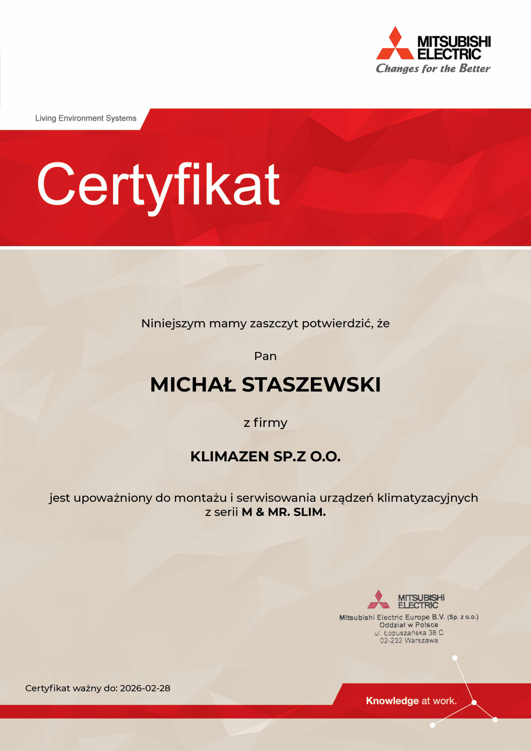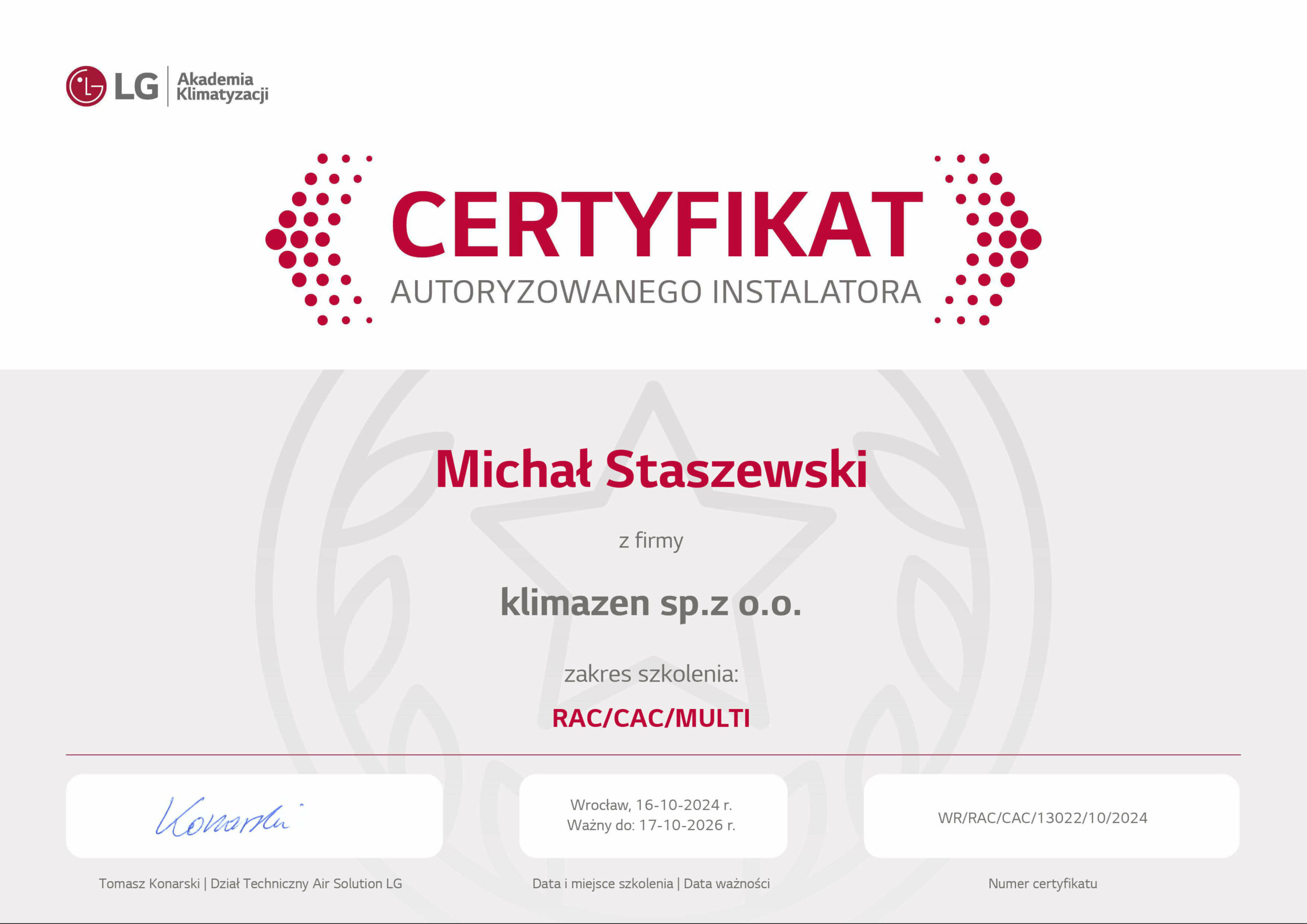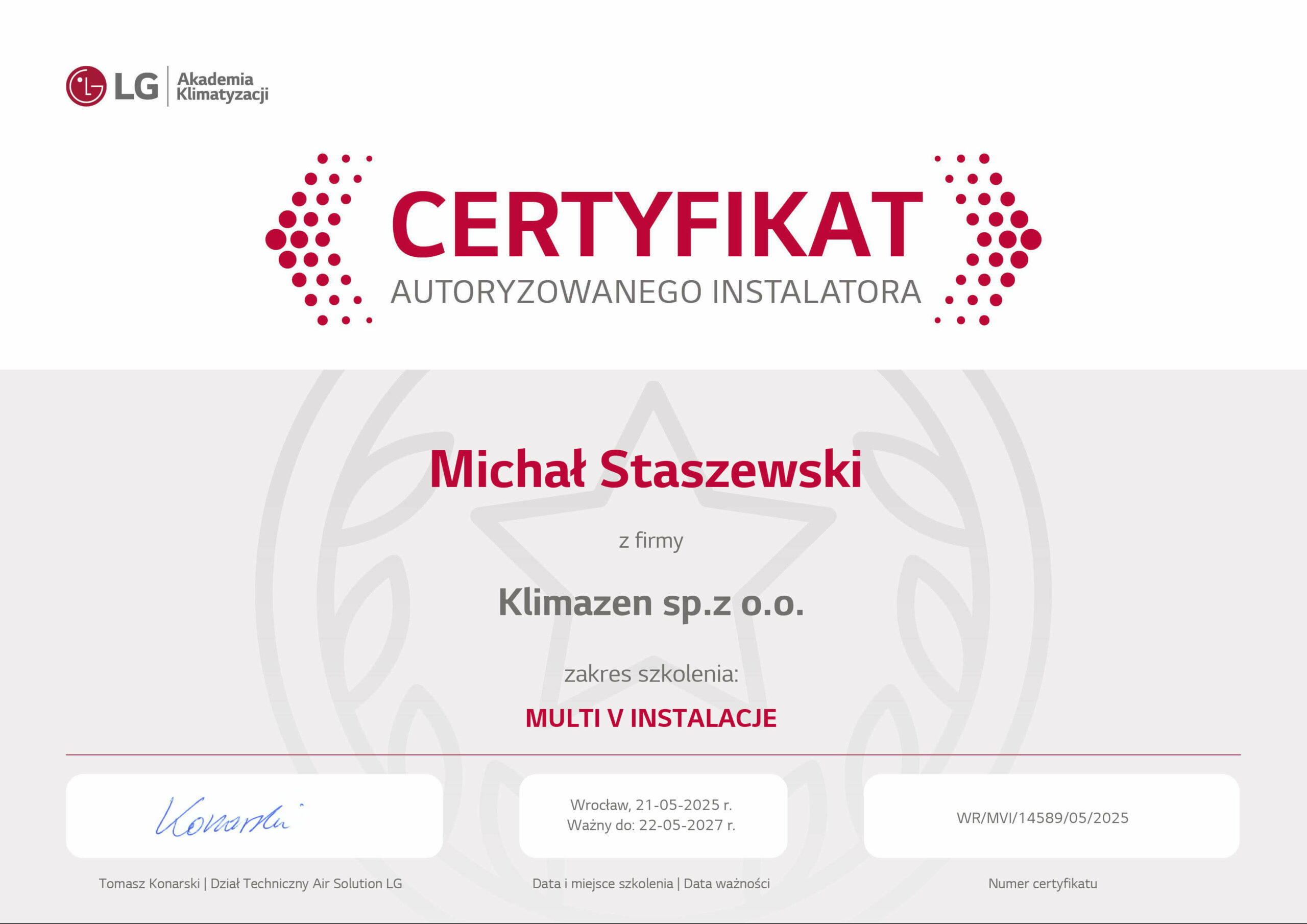 Mamy uprawnienia F-Gaz oraz regularnie uczestniczymy w szkoleniach branżowych.